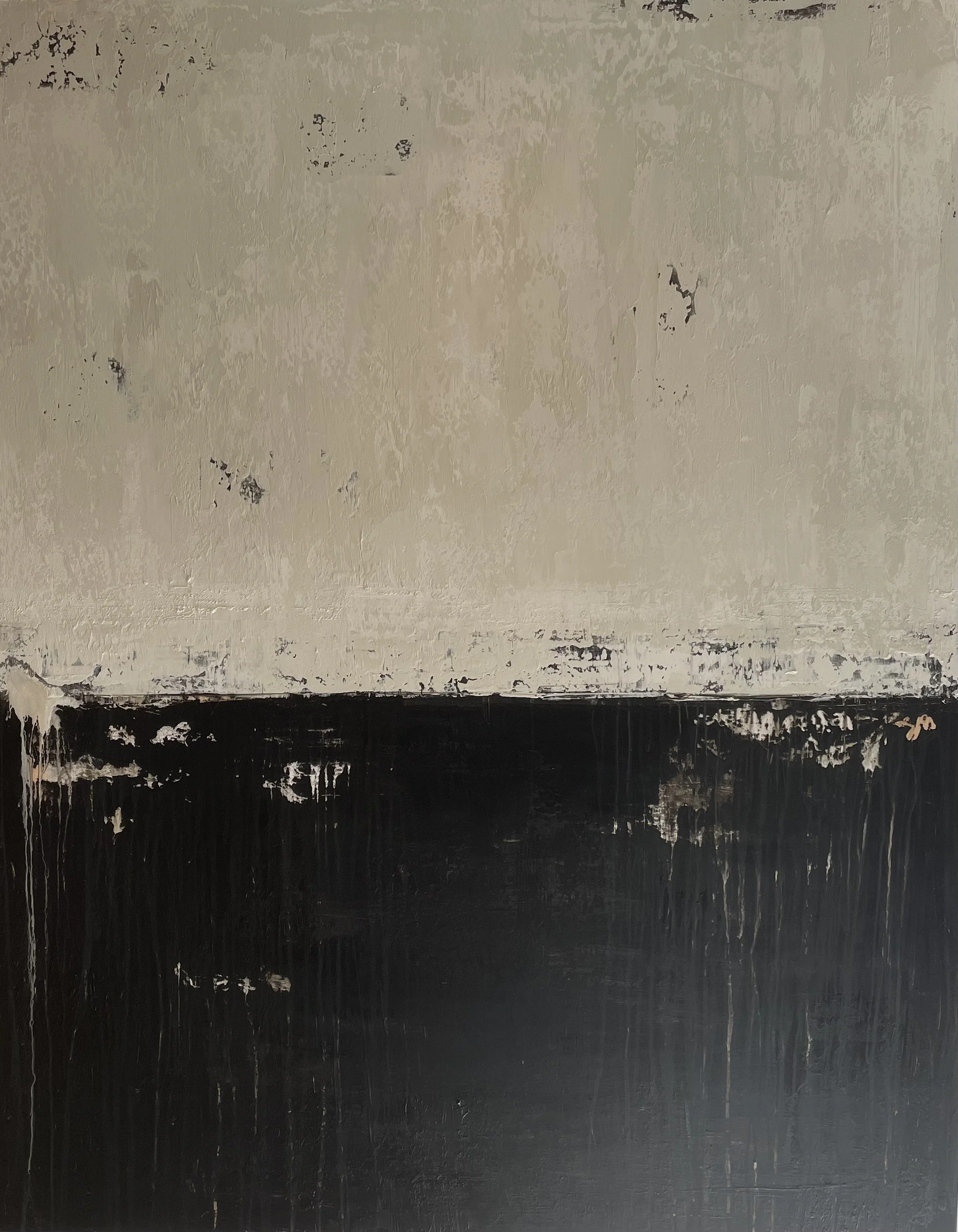 Karin works with many layers and primarily works with canvases in large formats. The paintings are made with acrylic paint, charcoal, pencil and with a putty knife as the main tool.