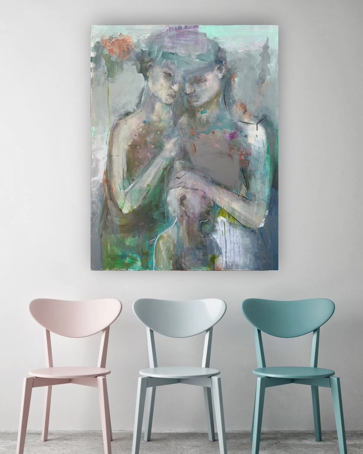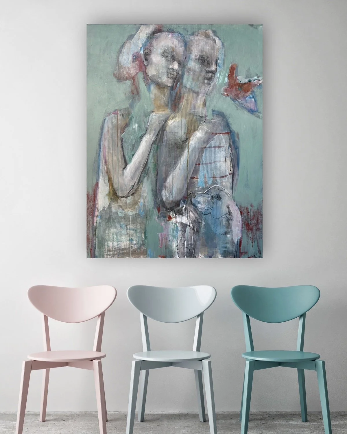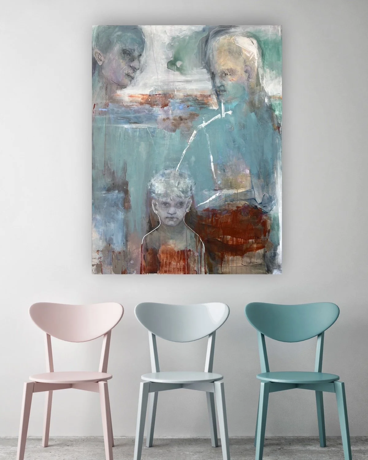 Det udløser overmaling, lag og impulsivt frustrerede penselstrøg og giver til sidst balancen mellem grafisk udtryk, levende intensitet og følelsesmæssig mæthed, der afgør, at maleriet er færdigt.