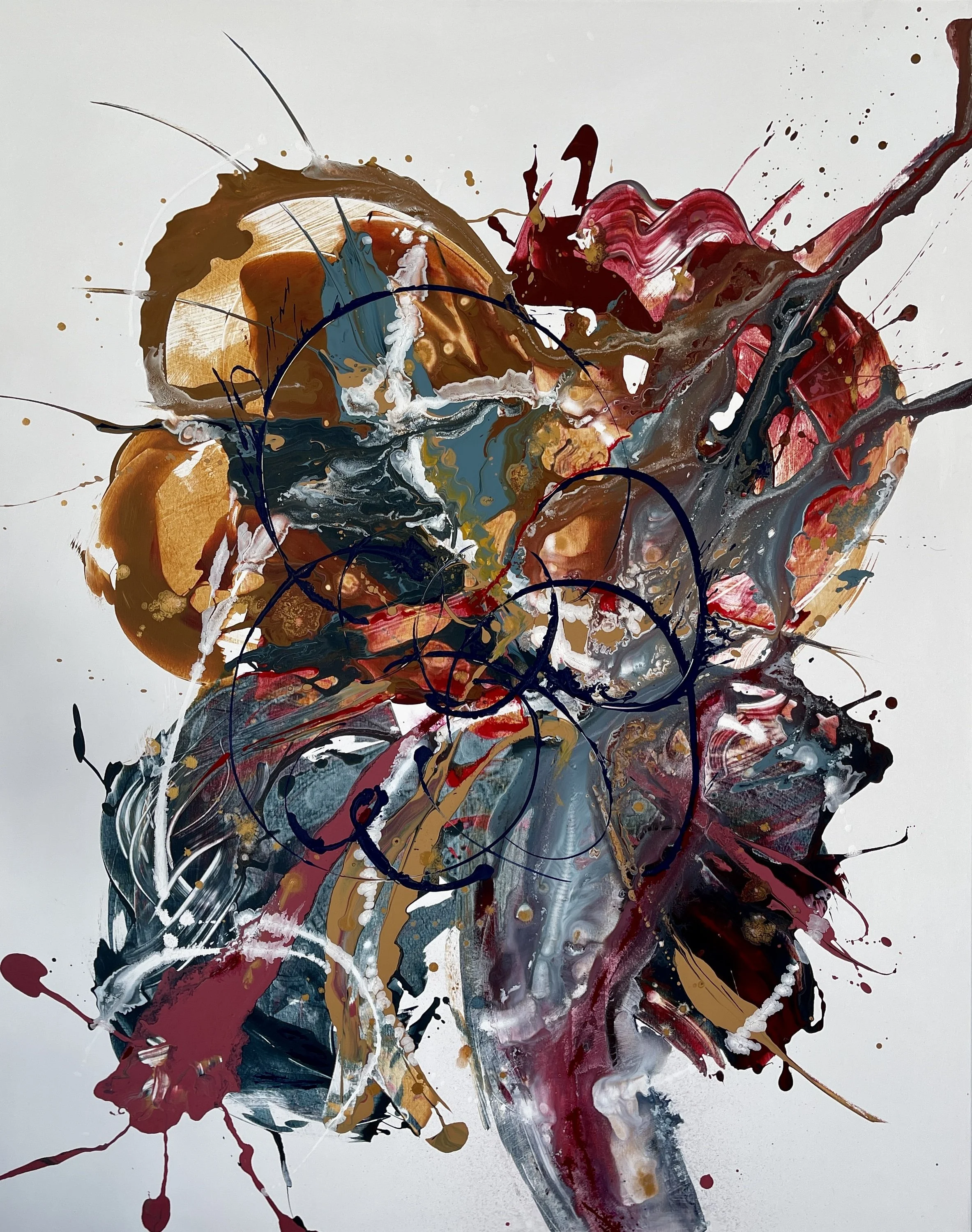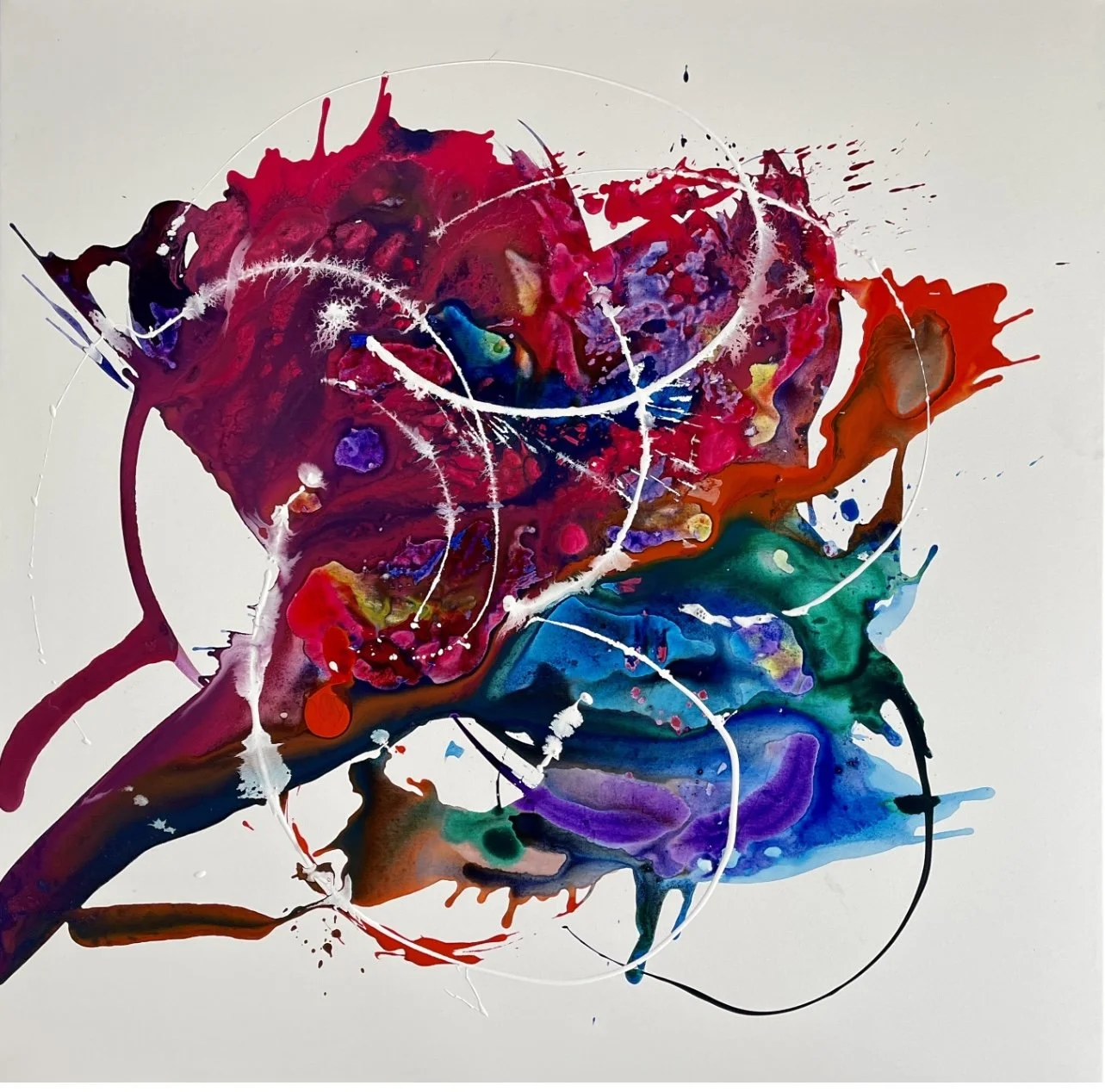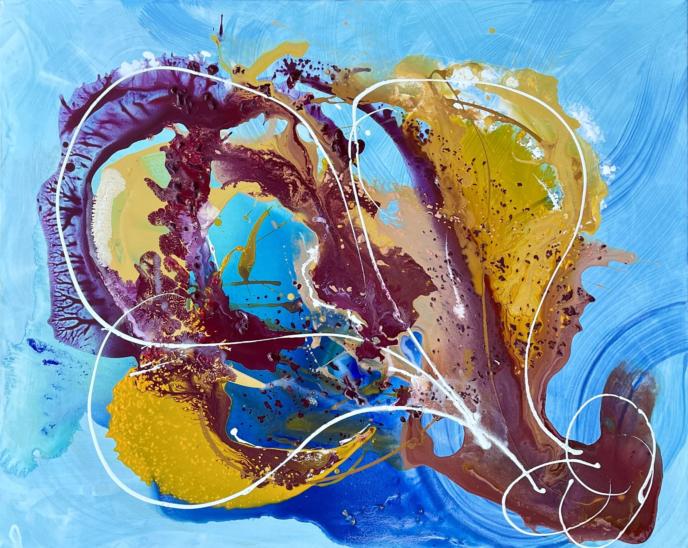 Malene Krogh maler abstrakt og hendes kunstneriske udtryksform udspringer af en blanding af energi, følelser samt visuelle indtryk hun oplever i hendes hverdag.