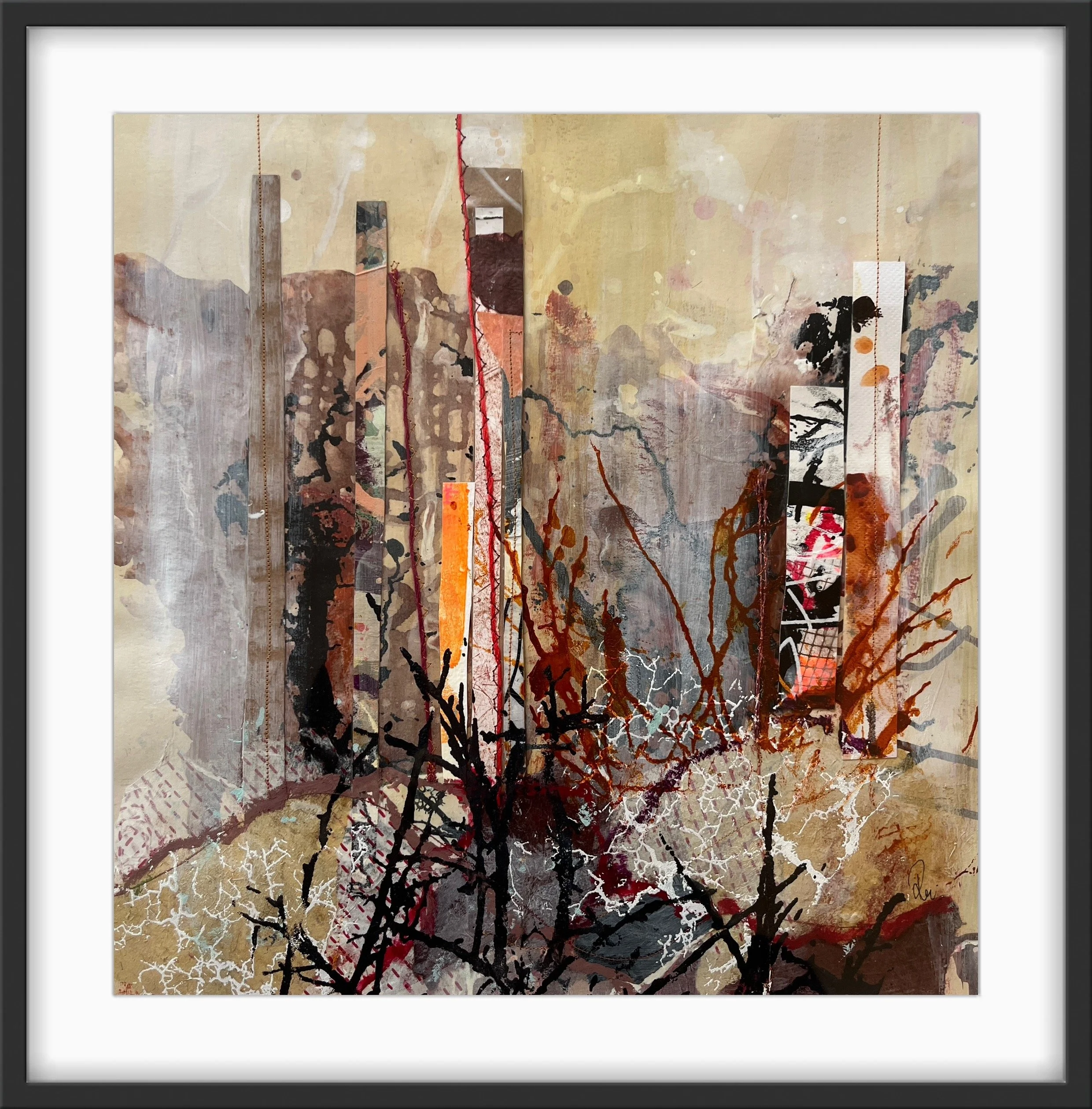 Rie Brødsgaard works with multi-layered images, both figurative and non-figurative, on canvas and paper. She draws inspiration from her surroundings, nature, people, patterns, contrasts, textures, and colour choices, combining them into exciting, experimental collage paintings.